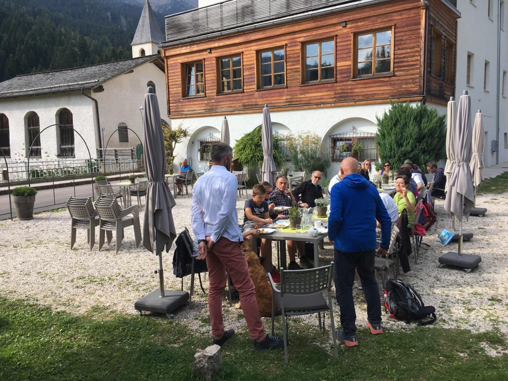 Infine, si è raggiunto Mirko Mocatti al Zum Hirschen Hotel (Hotel Cervo) di sua proprietà. Un luogo incantevole con una storia secolare, legata al viaggio di pellegrini che già nel Medioevo giungevano a Senale per rendere omaggio al Santuario lì situato. Grazie a Mirko si è potuti andare a fondo nella riflessione sul significato di "turismo sostenibile": dalla ristorazione a km0 alla rete con le realtà del posto, dai servizi offerti a basso impatto ambientale alla riscoperta delle tradizioni del posto, per concludere con una riflessione sugli impatti economici del turismo per i territori.