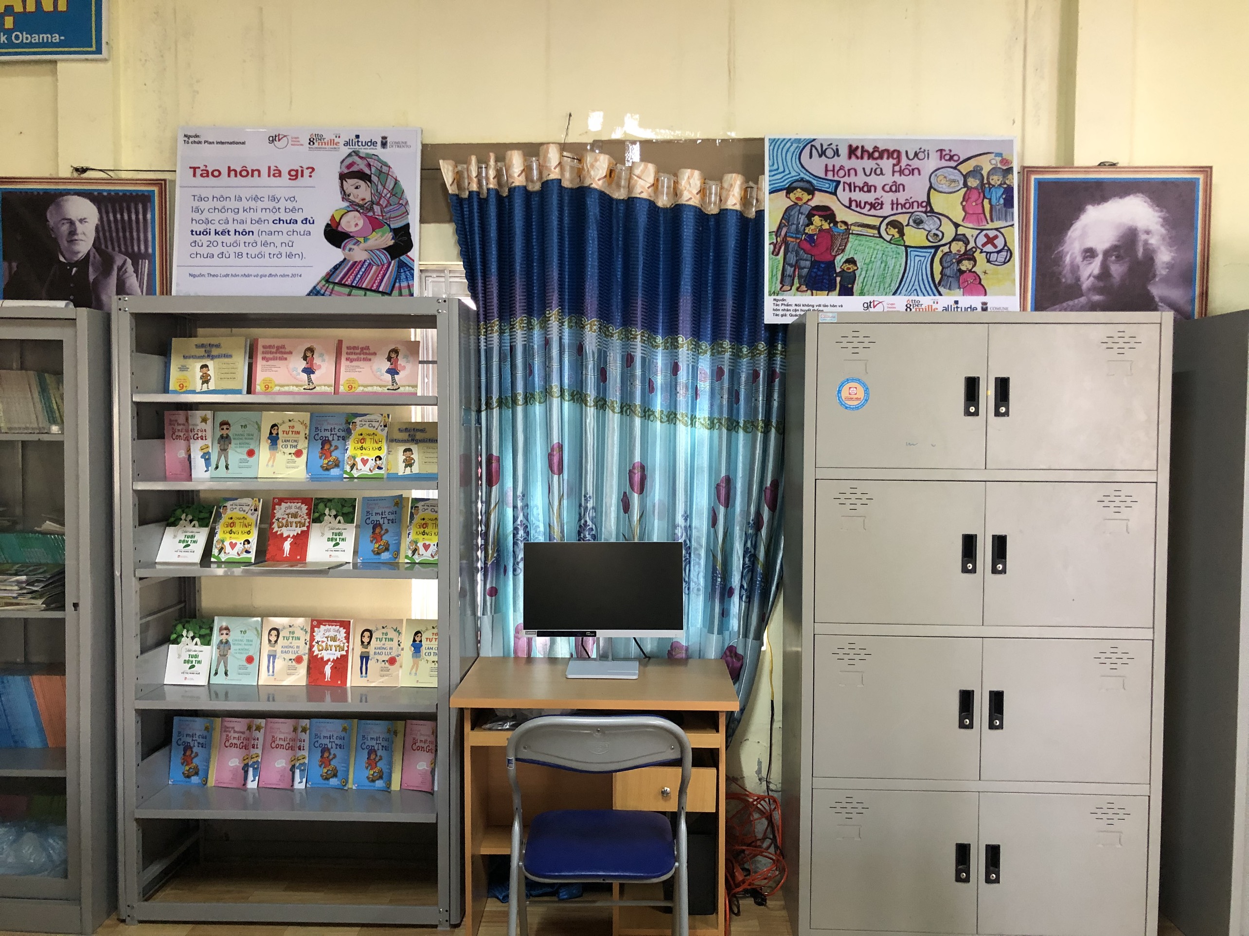Ognuna delle due scuole ha ricevuto un computer, una scrivania, una sedia e 82 libri, differenziati per età, per sensibilizzare e diffondere conoscenza sulla lotta ai matrimoni precoci, sui diritti dell'infanzia, della parità di genere e della salute riproduttiva, insieme a 4 pannelli sulla prevenzione dei matrimoni precoci.