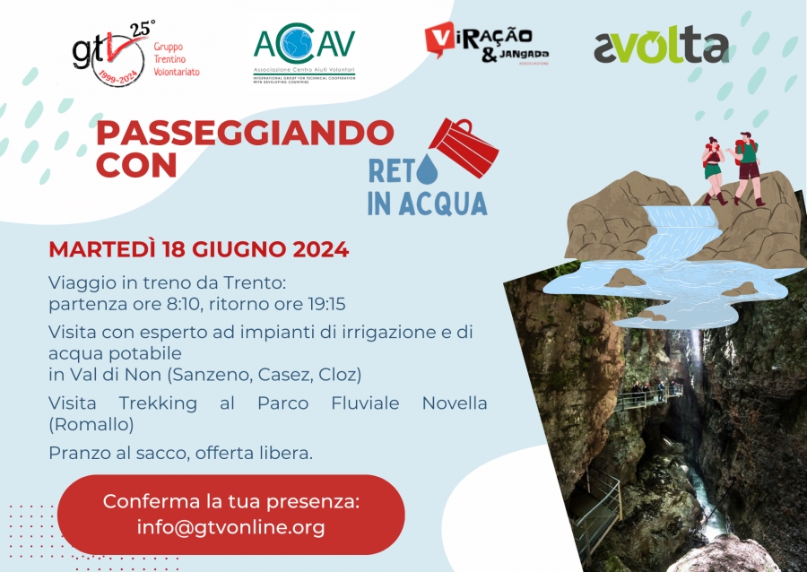 Giu 11 2024Il Progetto “Reti in acqua” è promosso dalle ONG GTV – Gruppo Trentino di Volontariato e ACAV – Associazione Centro Aiuti Volontari, attive nel settore della cooperazione internazionale allo sviluppo, con il sostegno di Ufficio Svolta, della Fondazione Trentina del Volontariato Sociale e del Comune di Levico Terme.