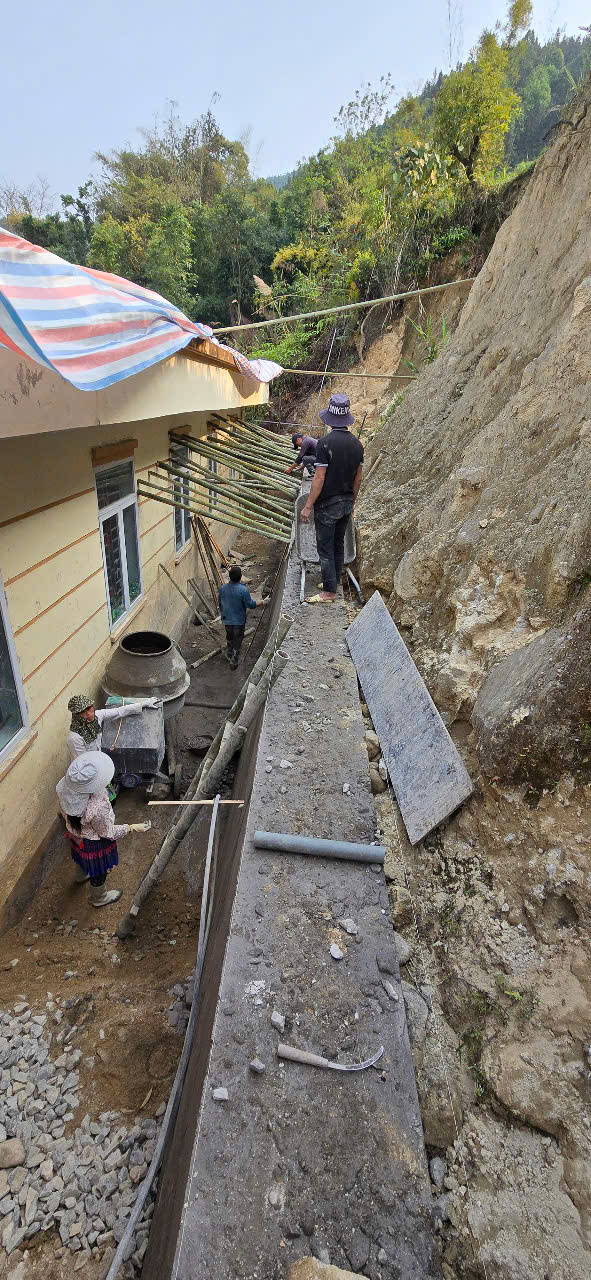 Per quanto concerne la scuola materna di Nam Dan, che accoglie ad oggi 35 alunni, il progetto di GTV provvederà alla messa in sicurezza della parte posteriore dell’edificio e dei suoi pressi. In particolare, l'opera ormai avviata consisterà nel livellamento con escavatore del terreno posteriore, affinché siano prevenuti futuri smottamenti e il terreno montagnoso venga rinforzato con un muro di contenimento in calcestruzzo e un fosso di drenaggio.