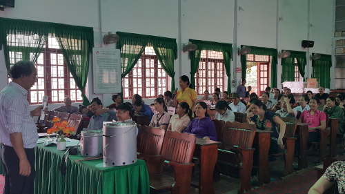 - il primo è stata organizzato il 5 maggio, proprio durante il periodo in cui Stefano, il ragazzo dell’Università di Trento che si è occupato del monitoraggio nelle case, era presente in Vietnam. L’incontro si è svolto nella sala riunioni del Comitato Popolare di Tuan Dao con la partecipazione di circa 90 persone.