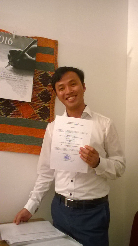 Infine, il 5 luglio 2017, alle ore 14, Duc entro' in una stanza dell'Universita' di Innsbruck per discutere la sua tesi di dottorato. Un'ora dopo ne usci' Dottore di Ricerca: dopo cinque anni aveva raggiunto la conclusione del suo percorso.