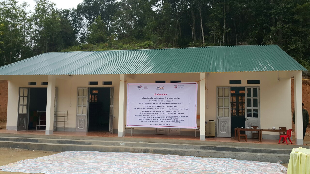 La ricostruzione di questa scuola è stata possibile grazie al progetto "Scuole Sicure", finanziato dall'otto per mille alla Chiesa Valdese e dalla Regione Autonoma Trentino-Alto Adige Sudtirol. Con questo progetto GTV, in sintonia con le istituzioni locali e le insegnanti, ha ricostruito la struttura che, se prima era in legno, molto precaria e senza bagno, ora vede muri di mattoni, nuovo tetto e serramenti ed una toilette con lavabo per insegnanti e studenti.