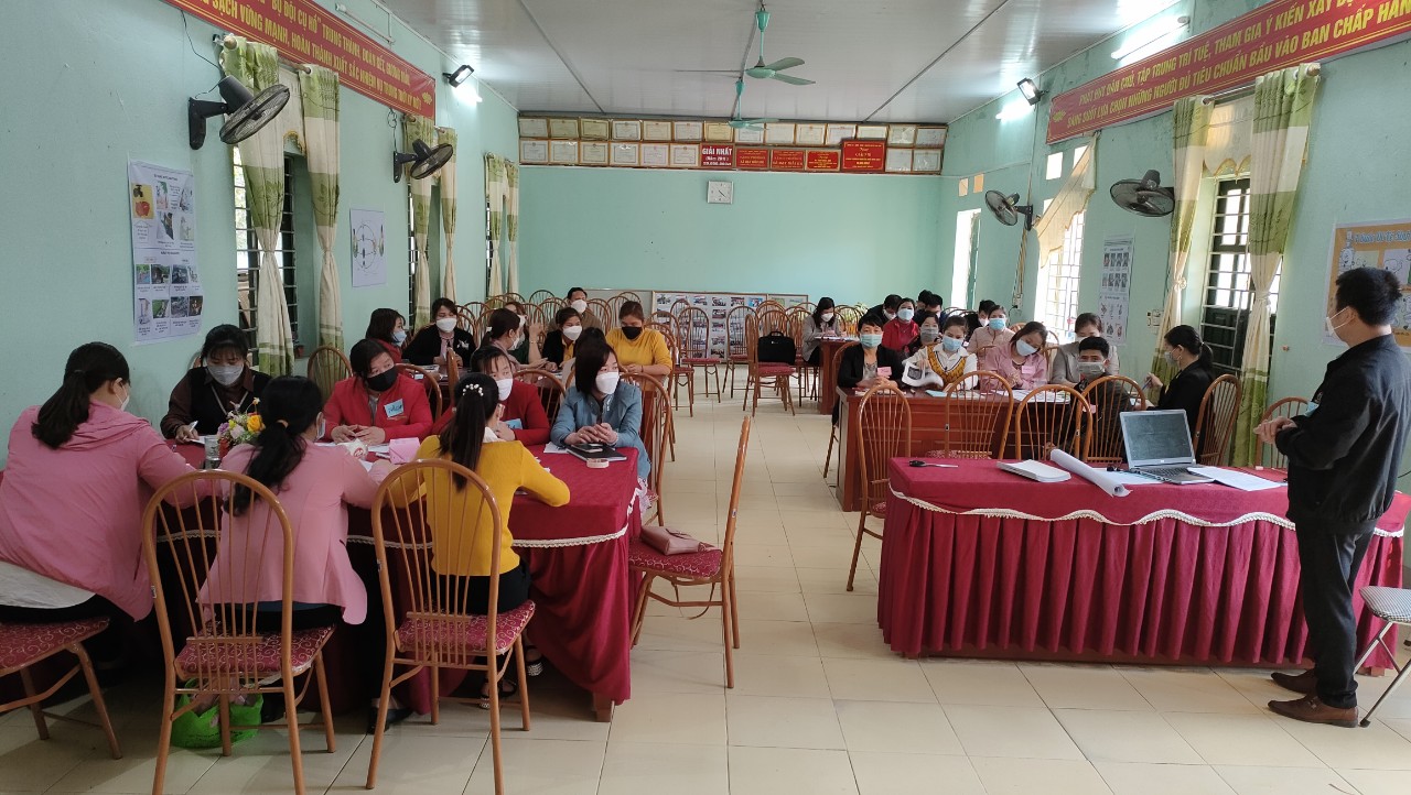 The training of Nam Dan was attended by 30 teachers, including 25 women and 5 men, who work in 7 seven kindergartens and 6 primary schools. About 25% of the total belongs to ethnic minorities. 30 teachers have always participated in the training at Doan Ket, 17 women and 13 men. They work in a total of 10 kindergartens and 9 primary schools. 20% of the total belongs to an ethnic minority.