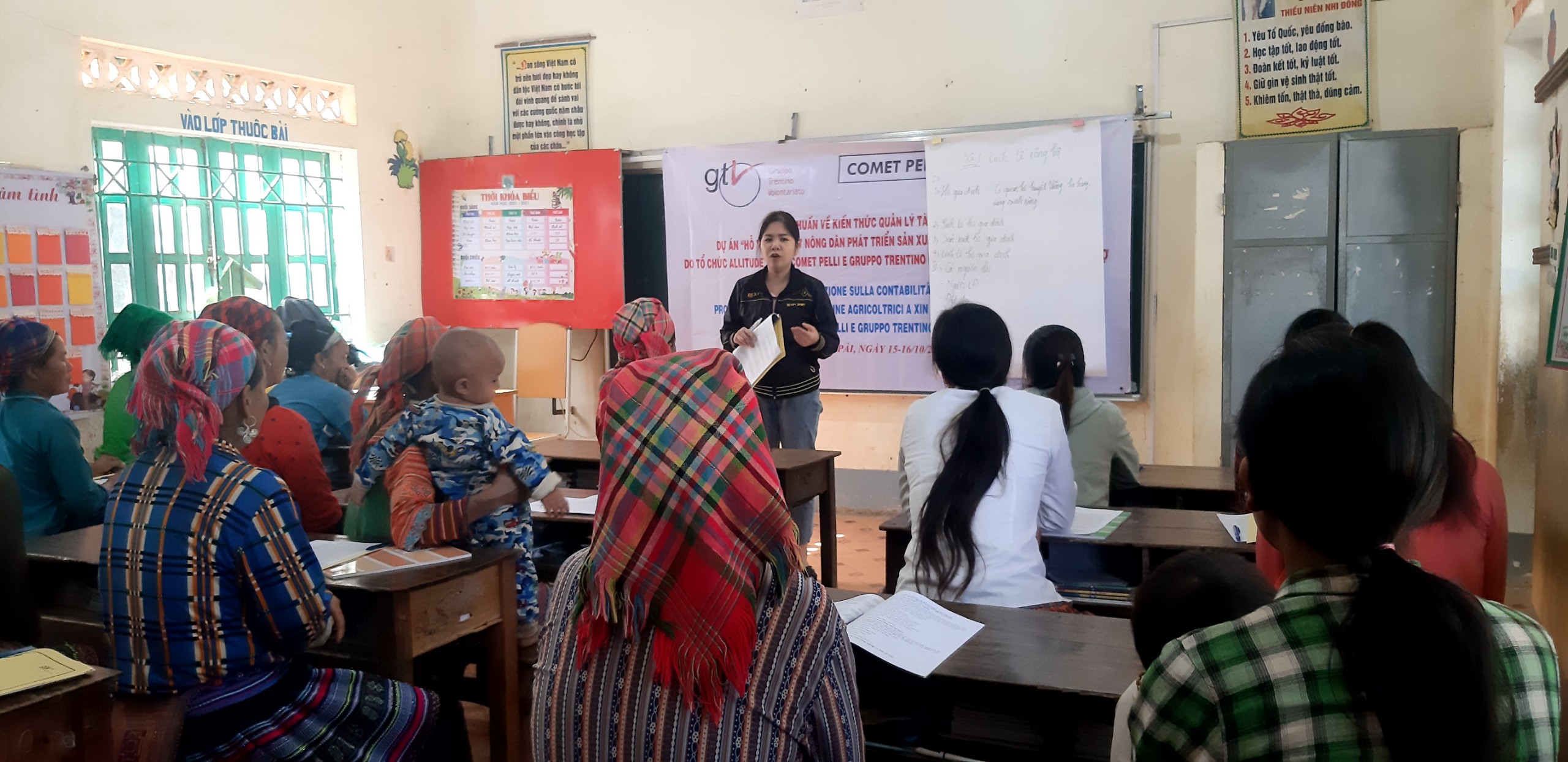 GTV decided to create this project considering the context in which many ethnic minority women live in Xin Man. The district is located in one of the poorest regions of Vietnam, Ha Giang, where the population is part of ethnic groups (especially Nung and H'mong) who do not speak the Vietnamese language and live mainly from subsistence farming. The general illiteracy rate is very high, especially among women, who more often drop out of school, also due to early marriages.