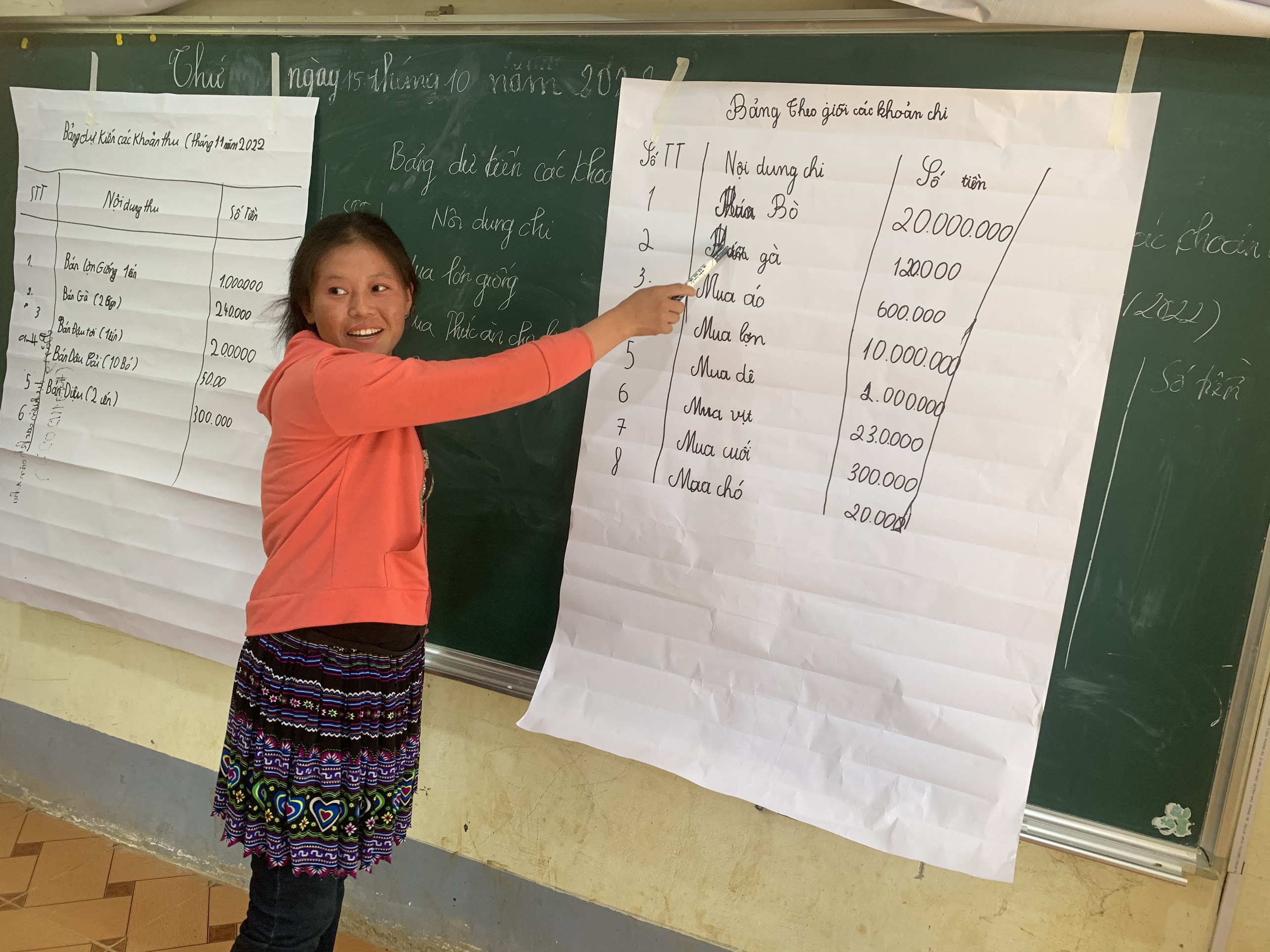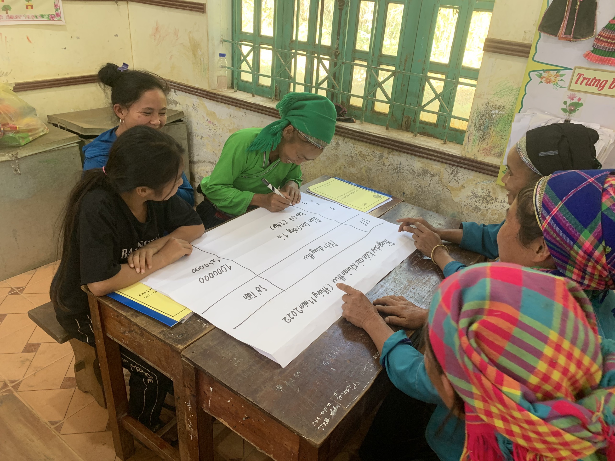 At the start of the project, our Vietnamese coordinator, Que, from Hanoi went up to Xin Man and attended the first activities held on October 15th and 16th. The first course, held simultaneously in three villages, focused on accounting and covered methods of running a family farm and how to make a profit by selling surpluses for wages.