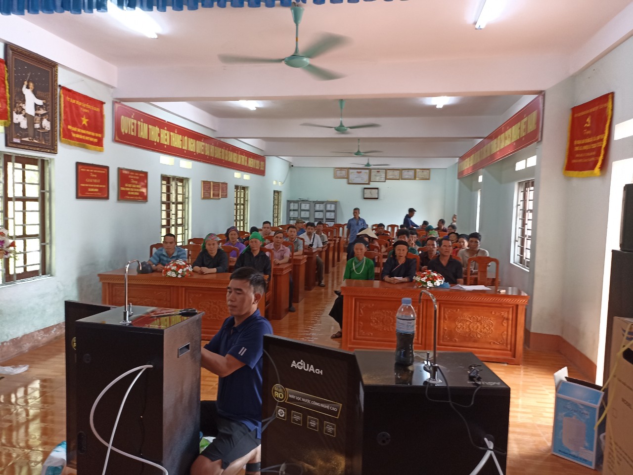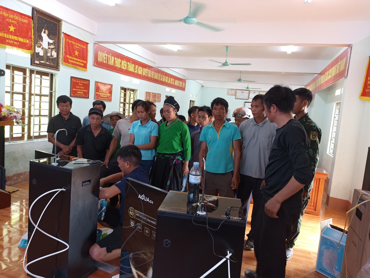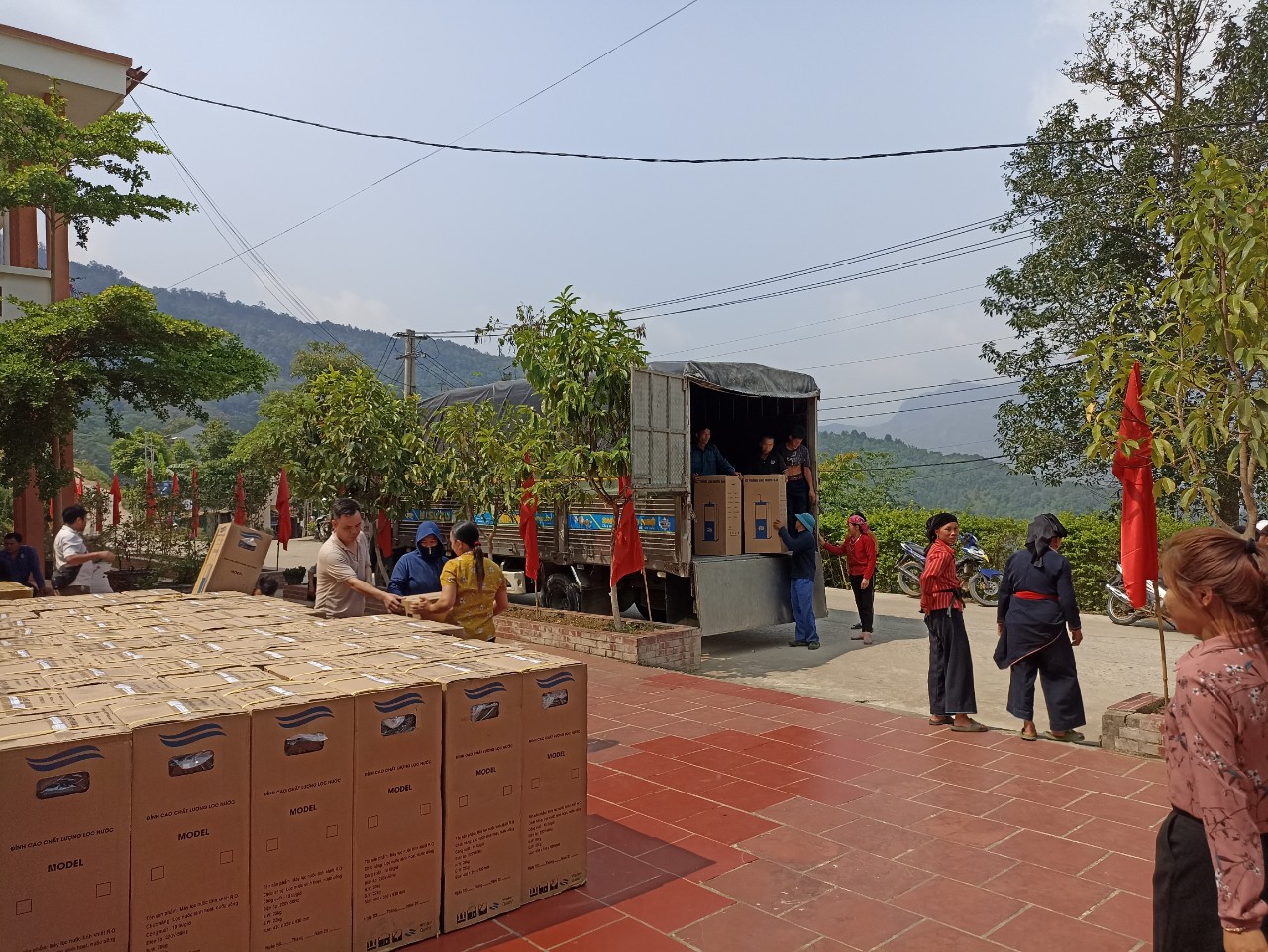 Additionally, filter systems and water tanks were distributed to 4 schools, the Municipal People's Committee, and the health center, totaling 8 filter systems and 18 water tanks with a capacity of 2,000 liters.
