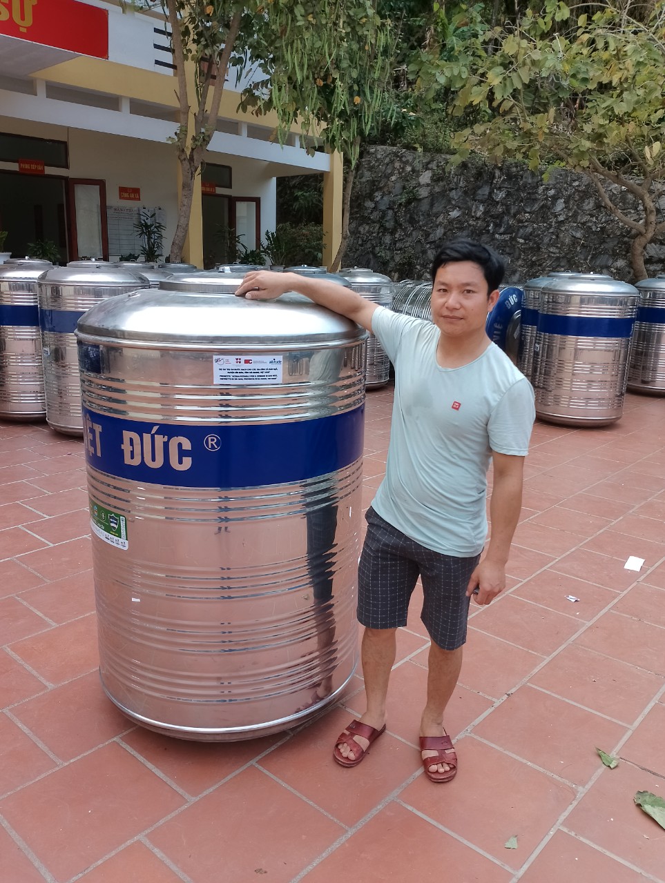 To ensure access to safe drinking water for the residents of Tao Thuong and Tao Ha villages, a home purification system consisting of a 9-stage filter was provided to each household, along with a stainless steel tank with a capacity of 1,200 liters. A total of 193 water tanks were provided to beneficiary households.
