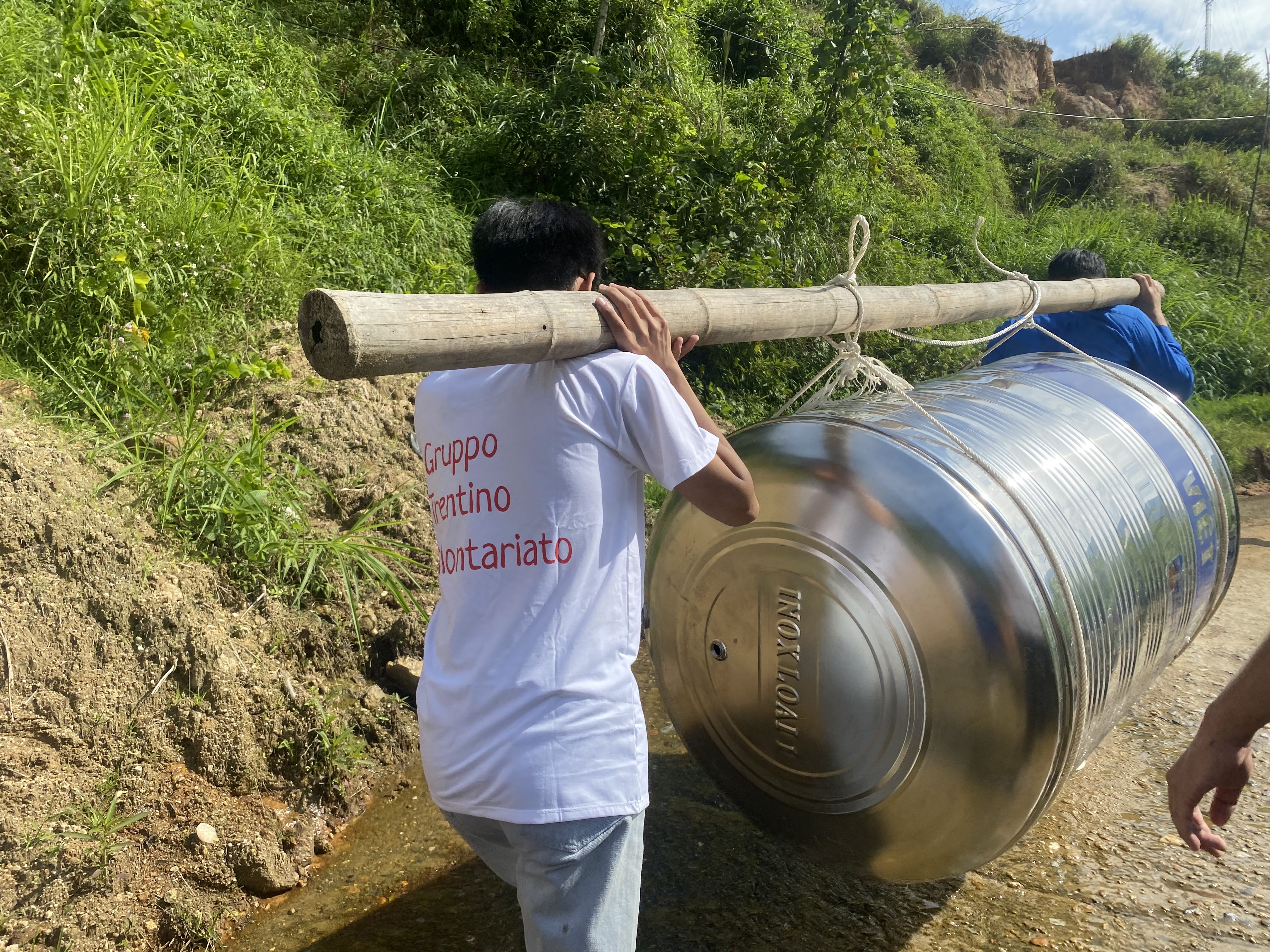 In 2024, 26 metal tanks for water collection were also distributed to as many families. Twelve of these tanks were delivered on Sunday, 27th in Nam Dan commune. These tanks are used by the families to collect rainwater and store water from nearby streams, which do not have a constant flow throughout the year. However, this water is not drinkable unless filtered or boiled first.
