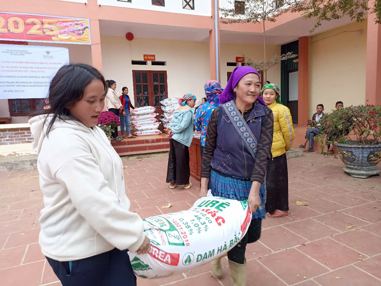 Between January 20 and 21, more than 2.000 plants - among which plum, pear, jackfruit and mango trees - have been transferred and delivered directly to the recipient women of Nam Dan e Ban Ngo, in Xin Man district. Meanwhile, more than 5.000 kg of fertilizer, along with tools for planting and tree care, were distributed. Moreover, between January 20 and 25, Nam Dan's women received 2 goats each, while in Ban Ngo the distribution completed by the end of February, amounting to a total of 120 goats.