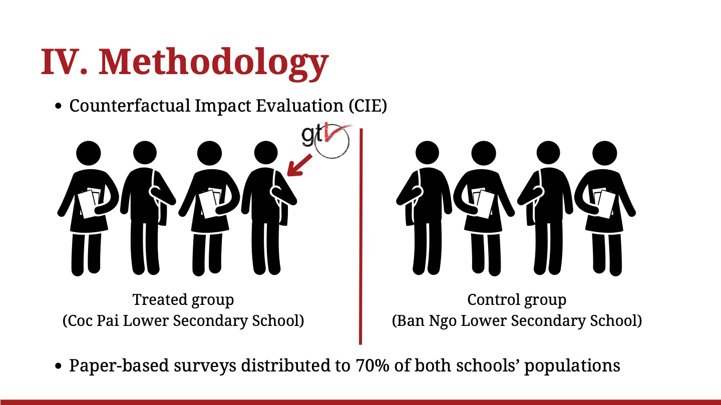 Elena, with the support of the Vietnamese staff of GTV and the local authorities of Xin Man, examined the impacts and potential replicability of the POEMA project during her thesis research conducted in Vietnam. In particular, she focused on the effects that the project had on the boys and girls of the Coc Pai middle school, who participated in an educational campaign on the prevention of early marriage for nine months, received books and materials on this topic, and presented performances at the final events for the entire community. To do this, counterfactual impact evaluation techniques were used, which allow for a high level of methodological rigor. The survey results of the POEMA project participants were compared to those of a control group, identified in the Ban Ngo school.