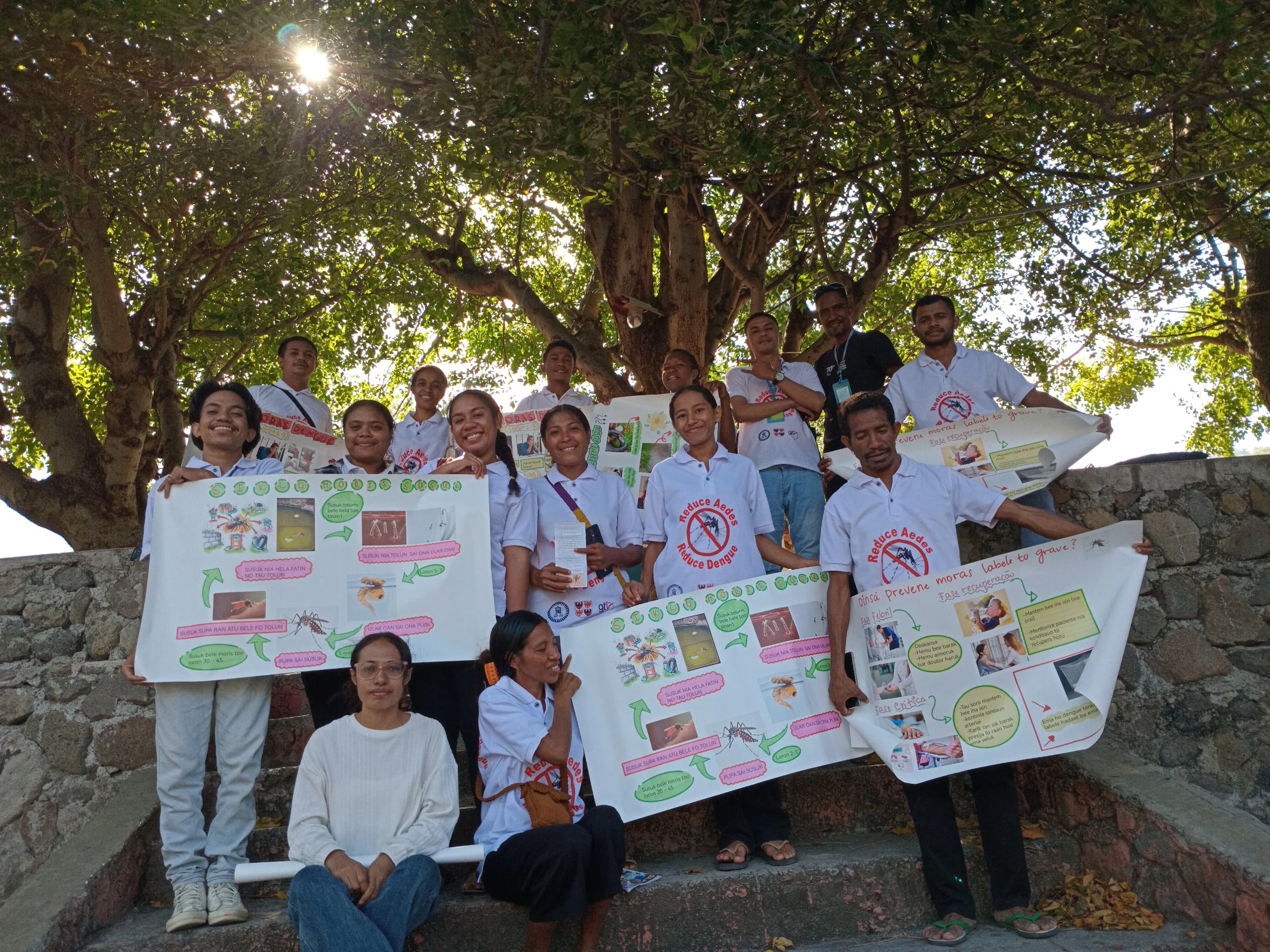 The sessions are intended for the local population and will be held in the areas of of the villages of Makili and Vila Maumeta and will be organized and led by the project manager and the young volunteers who were previously trained in Dengue prevention and who carried out the mapping of Aedes aegypti mosquito breeding sites in Makili.