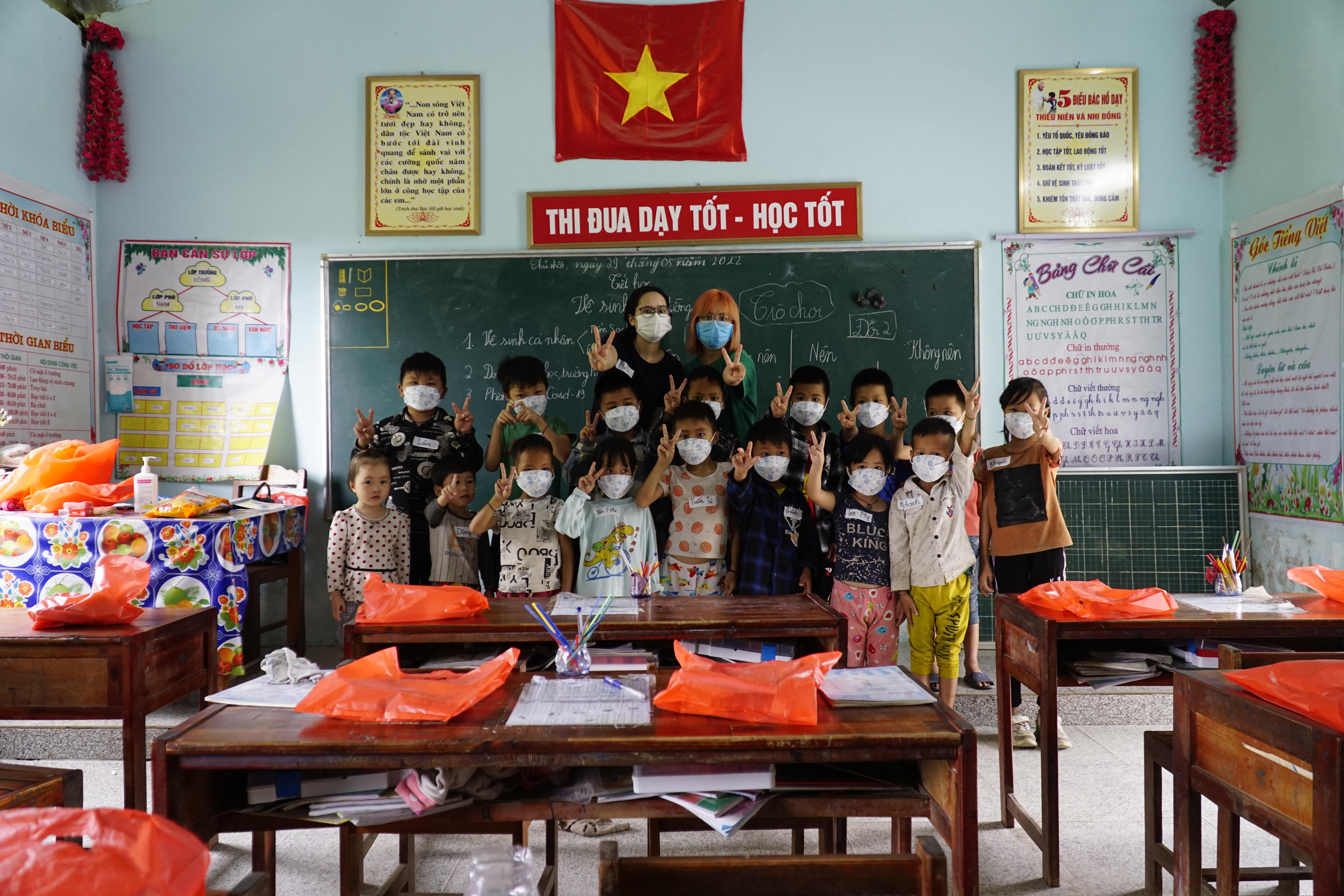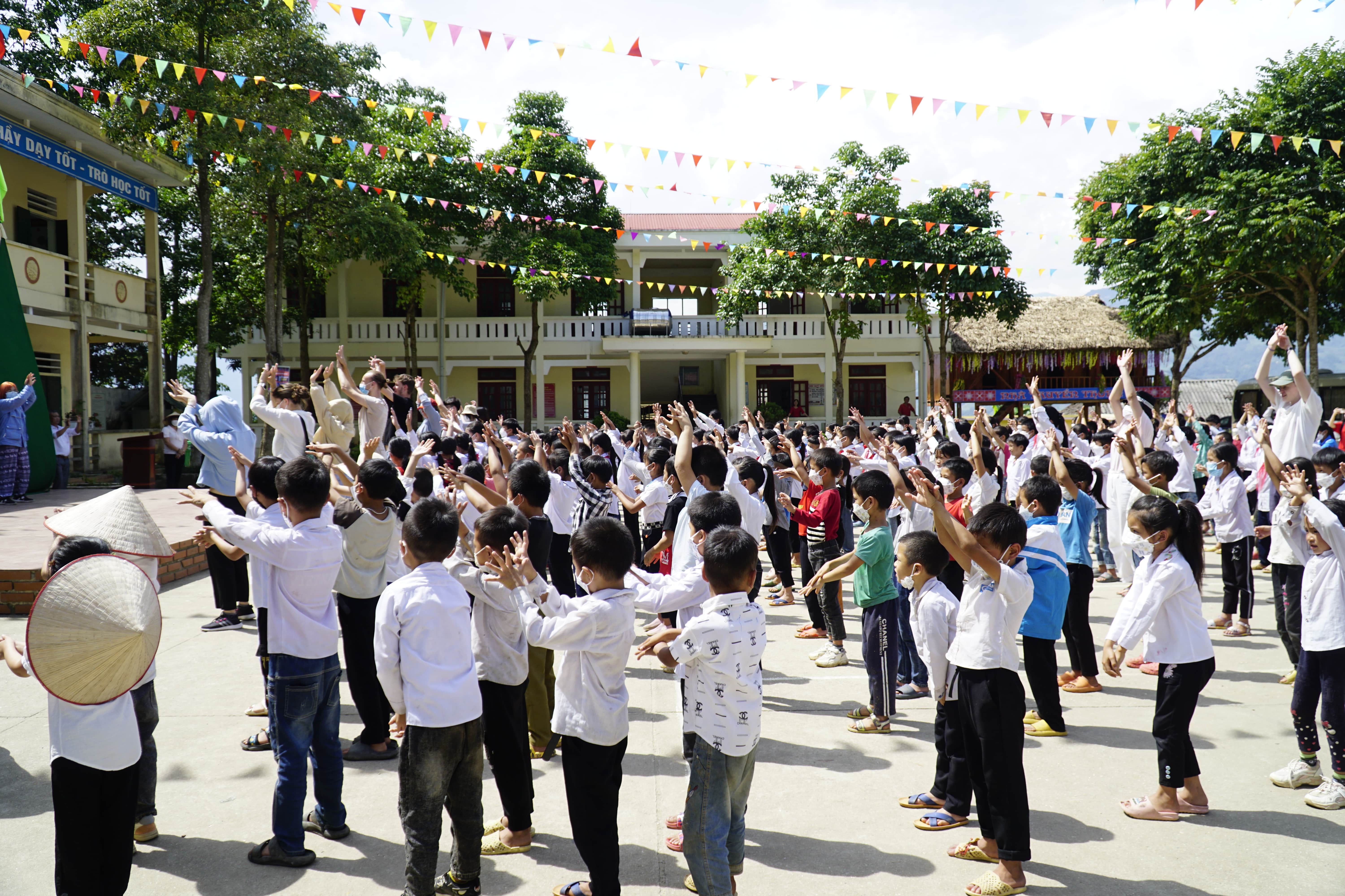 I volontari arrivati da Hanoi, hanno trascorso un’intera giornata in compagnia di 1.256 alunni. Nelle classi, hanno conosciuto i bambini e realizzato diverse attività ludico-formative per insegnare loro l’importanza di combattere la diffusione del Covid-19 attraverso semplici, buone abitudini igieniche. I bambini si sono messi in gioco, partecipando e rispondendo volentieri alle domande che venivano loro rivolte, incuriositi dai temi e dai modi coinvolgenti dei volontari. Alla fine della giornata, tutti gli studenti hanno ricevuto, oltre al libricino illustrato, anche mascherine e sapone per l’uso personale.