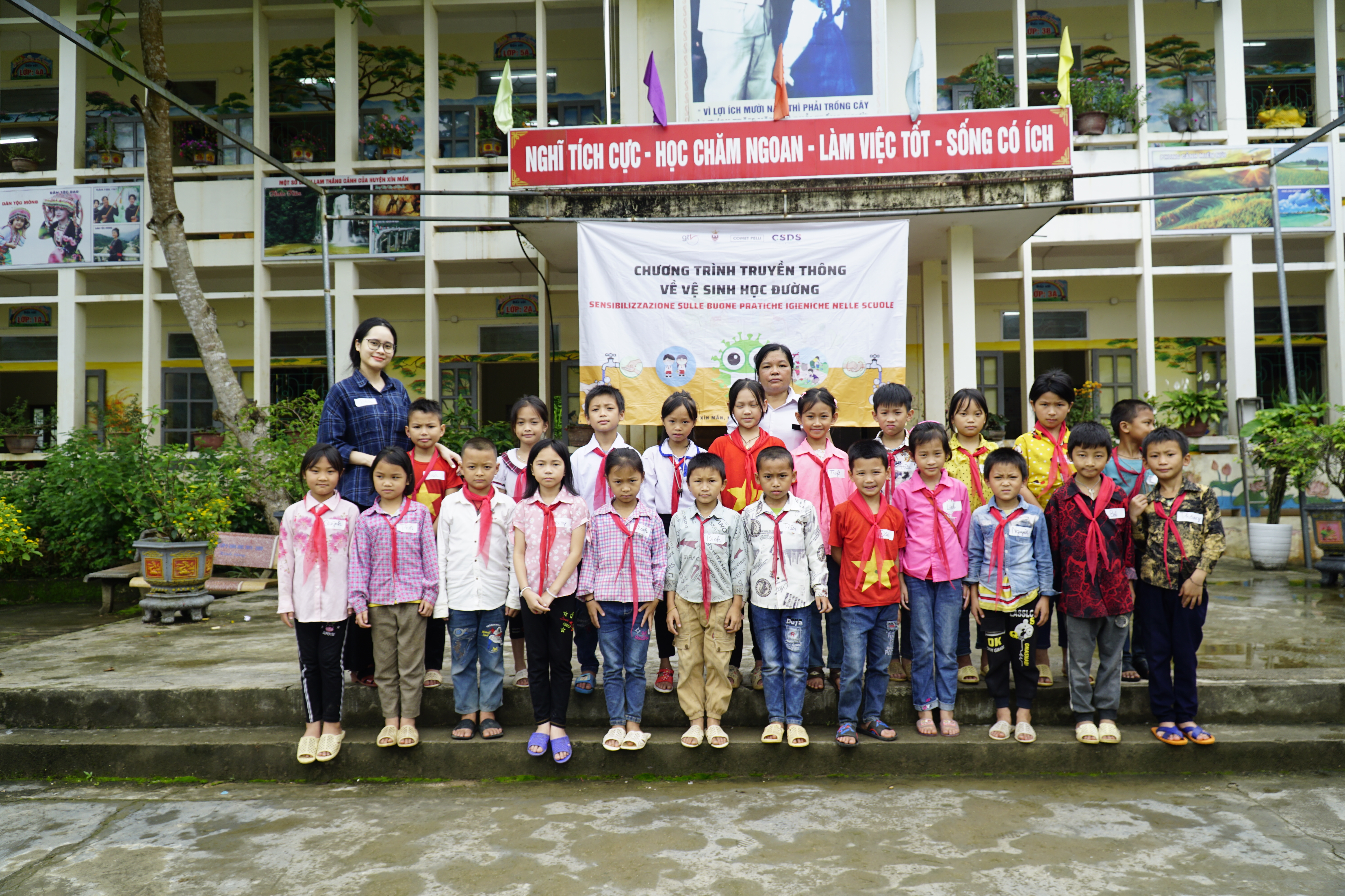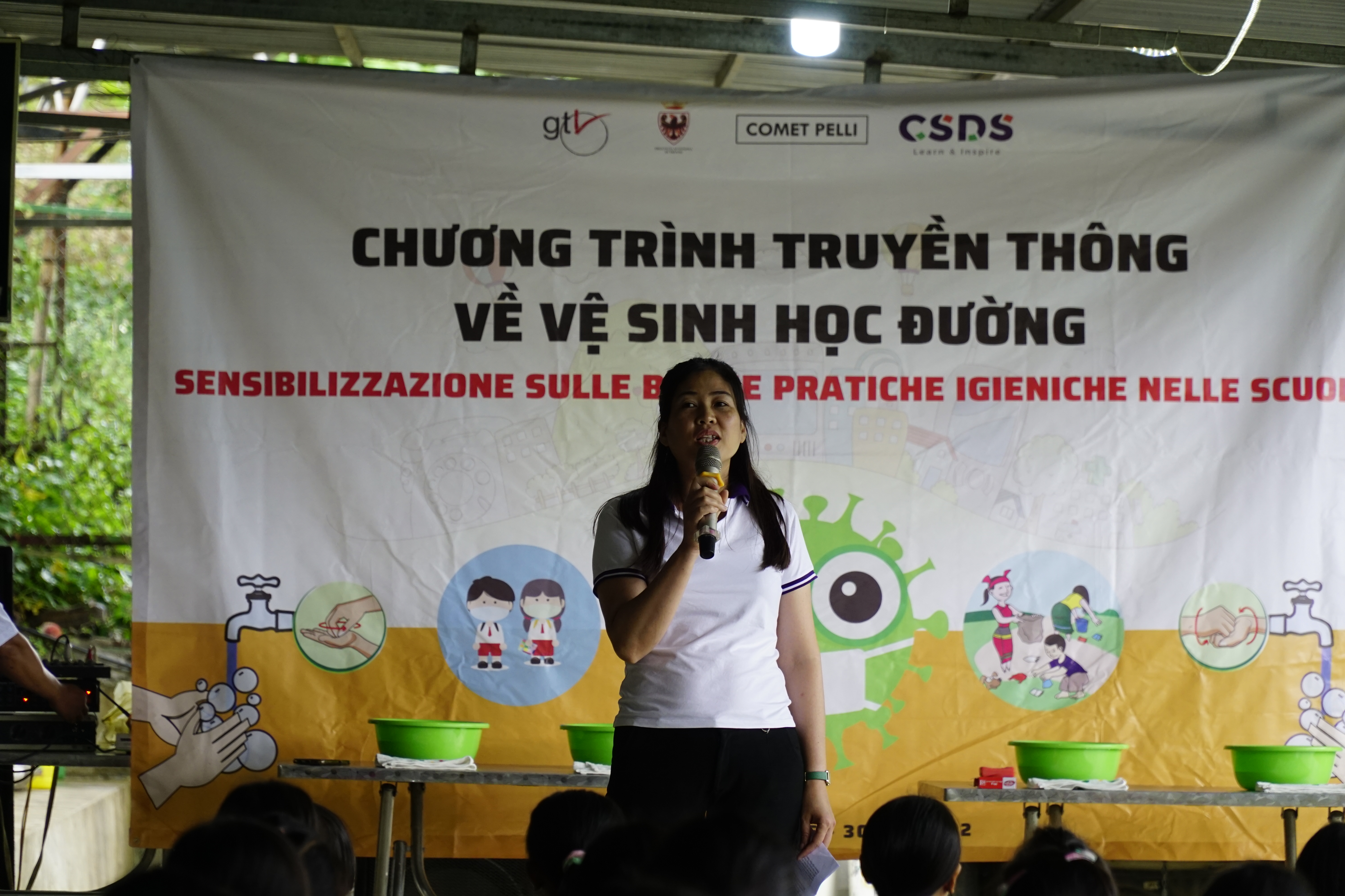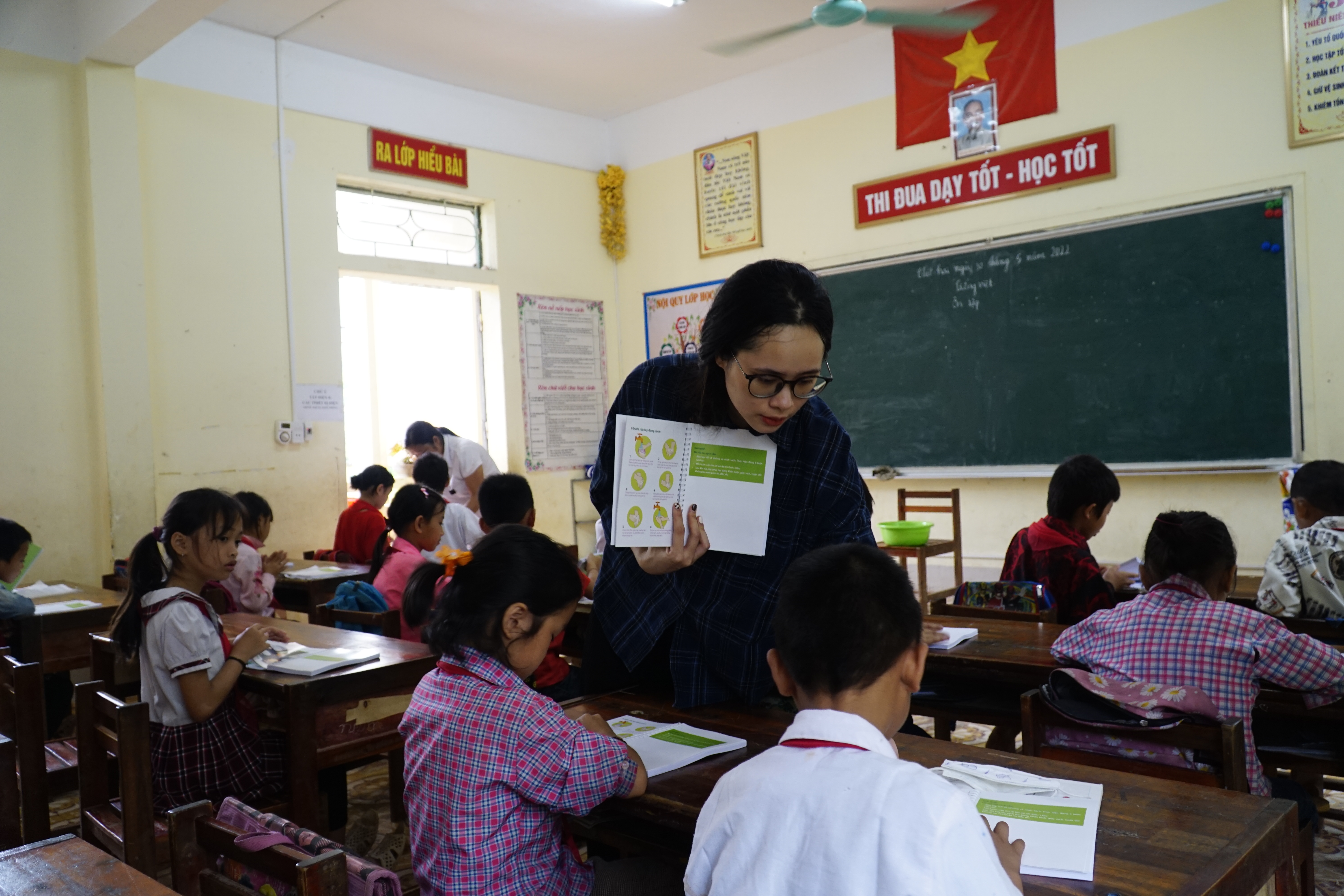 Anche 1.700 librettini illustrati sulle regole igieniche e di prevenzione dalla diffusione di virus, con contenuti adattati per fasce d’età, sono stati realizzati e distribuiti agli studenti ed agli insegnanti del distretto. Affinché queste istruzioni vengano assimilate dagli bambini, dal 26 al 30 maggio, 24 giovani volontari e studenti universitari appartenenti all’associazione Vietnamita CSDS hanno svolto campagne di sensibilizzazione sull’igiene nelle 12 dell’infanzia e primarie coinvolte nel progetto.