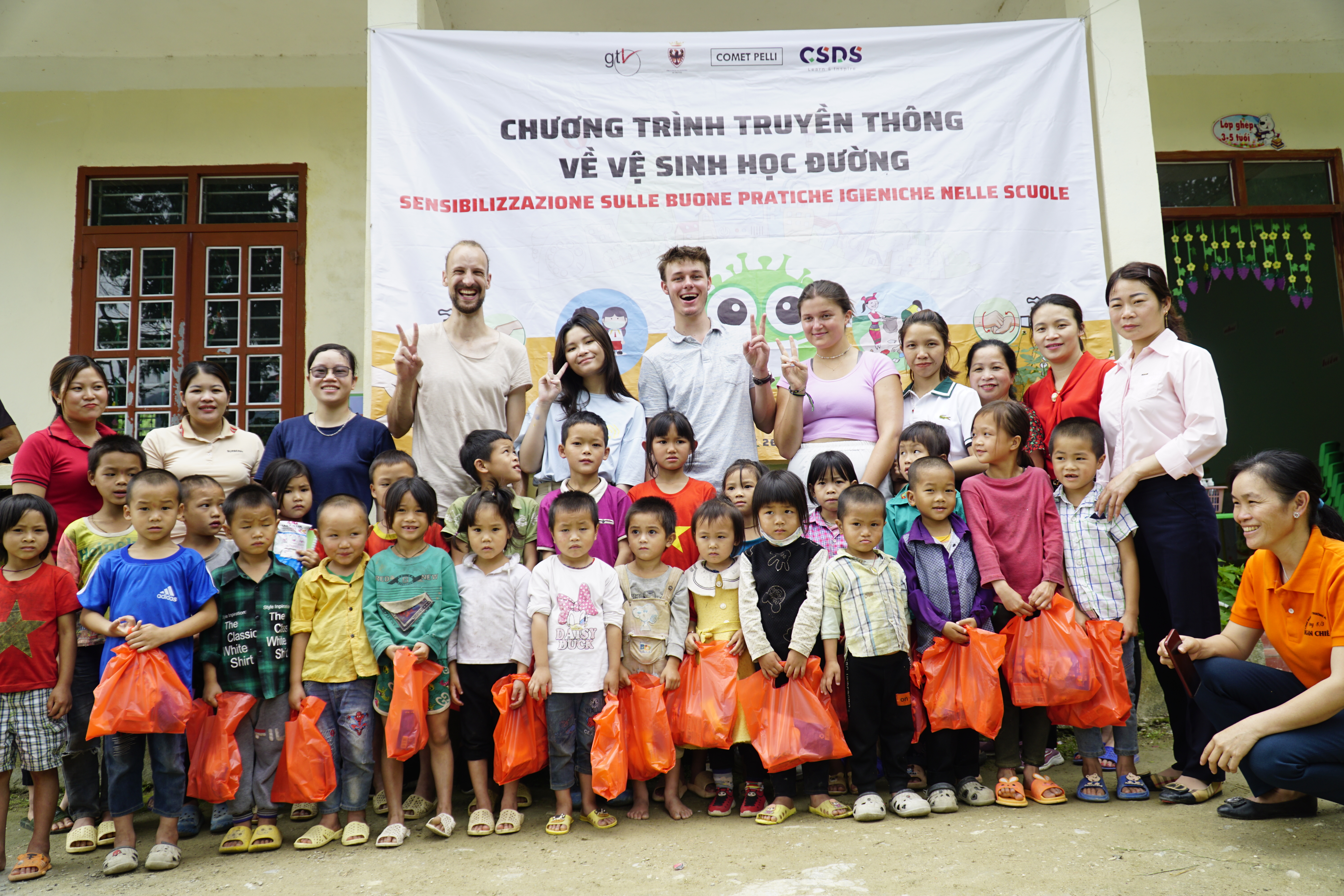 Accompagnati dai nostri collaboratori GTV in Vietnam, per molti di loro (alcuni di provenienza internazionale) è stata un’esperienza che li ha portati a scoprire una zona del paese mai visitata prima. Un territorio, quello del distretto di Xin Man e dei villaggi dove si trovano le scuole, che presenta alcune sfide con le quali anche questi giovani si sono dovuti confrontare. Tuttavia, ogni incontro si è rivelato piacevole e di successo grazie al prezioso supporto di tutti: volontari, insegnanti, autorità locali, la partecipazione entusiastica degli studenti e la disponibilità di tanti genitori che in diversi casi, per via del meteo e della percorribilità delle strade, hanno messo a disposizione i loro motorini per fare in modo che i volontari potessero raggiungere le scuole.