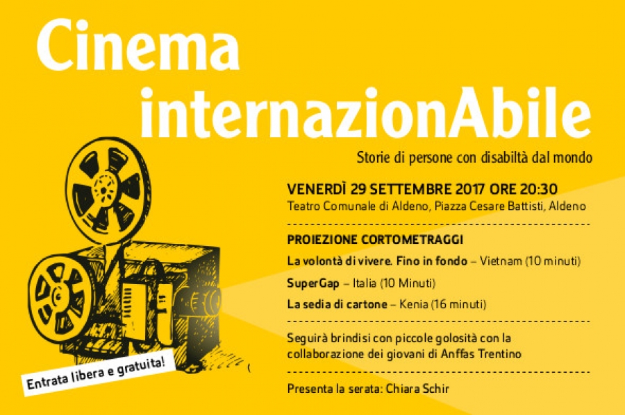 Set 21 2017Venerdì 29 Settembre 2017 alle 20:30 al Teatro Comunale di Aldeno una rassegna di cortometraggi per un viaggio fatto di increbili storie di vita di persone con disabilità.