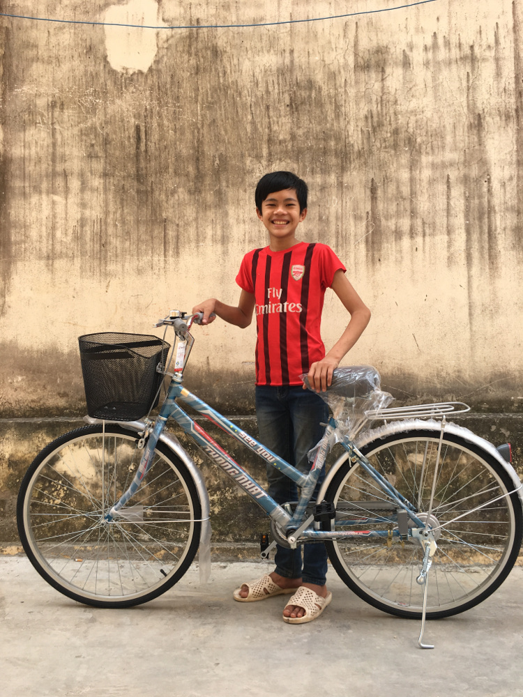 È proprio questa la storia di uno dei bambini a cui recentemente abbiamo consegnato una bicicletta. Il suo sogno era proprio di ricevere una bici, per poter arrivare in tempo a scuola. Grazie al progetto Semplici sogni diventano realta': bambini vietnamiti vanno a scuola in bicicletta finanziato da Poli, adesso il suo desiderio si è avverato.